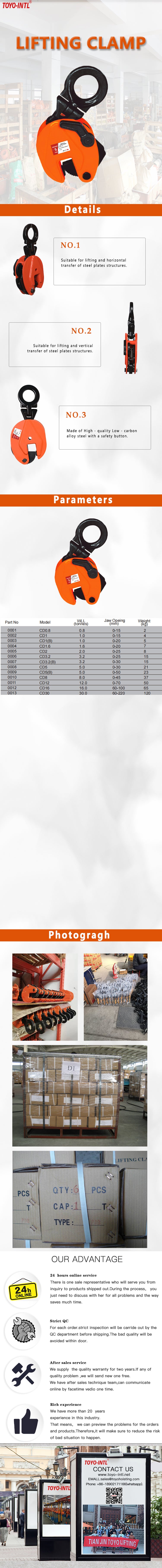 The universal vertical CD clamp is designed to ensure thatthe load can be lifted and turned(180).Whilst at the sametime ensuring that the load is positively retained.