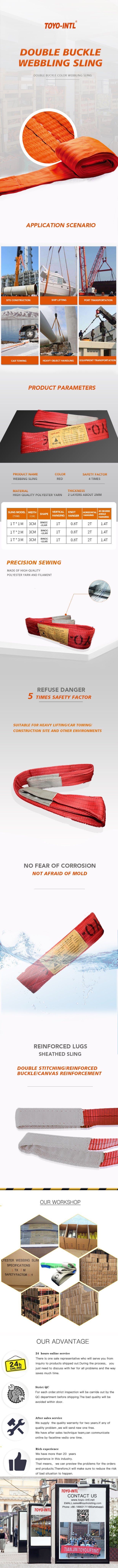 Material Double Ply Polyester web sling width reinforced lifitng eyes.